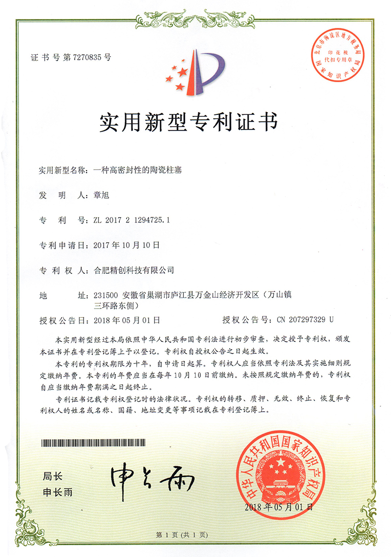 (2017實用新型)一種高密封性的陶瓷柱塞